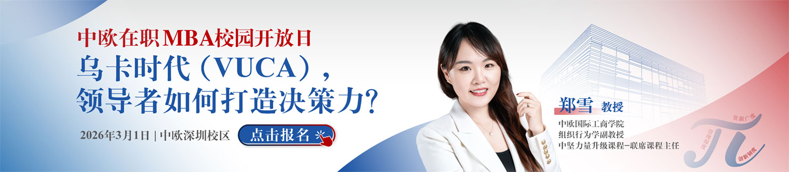 中欧在职MBA课程旨在培育青年才俊成长为有担当的商界杰出π型领袖。